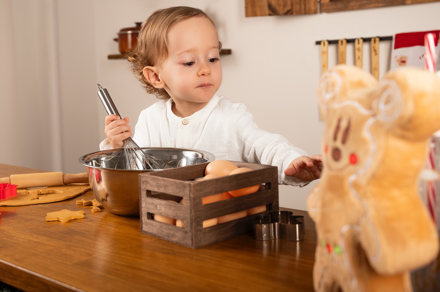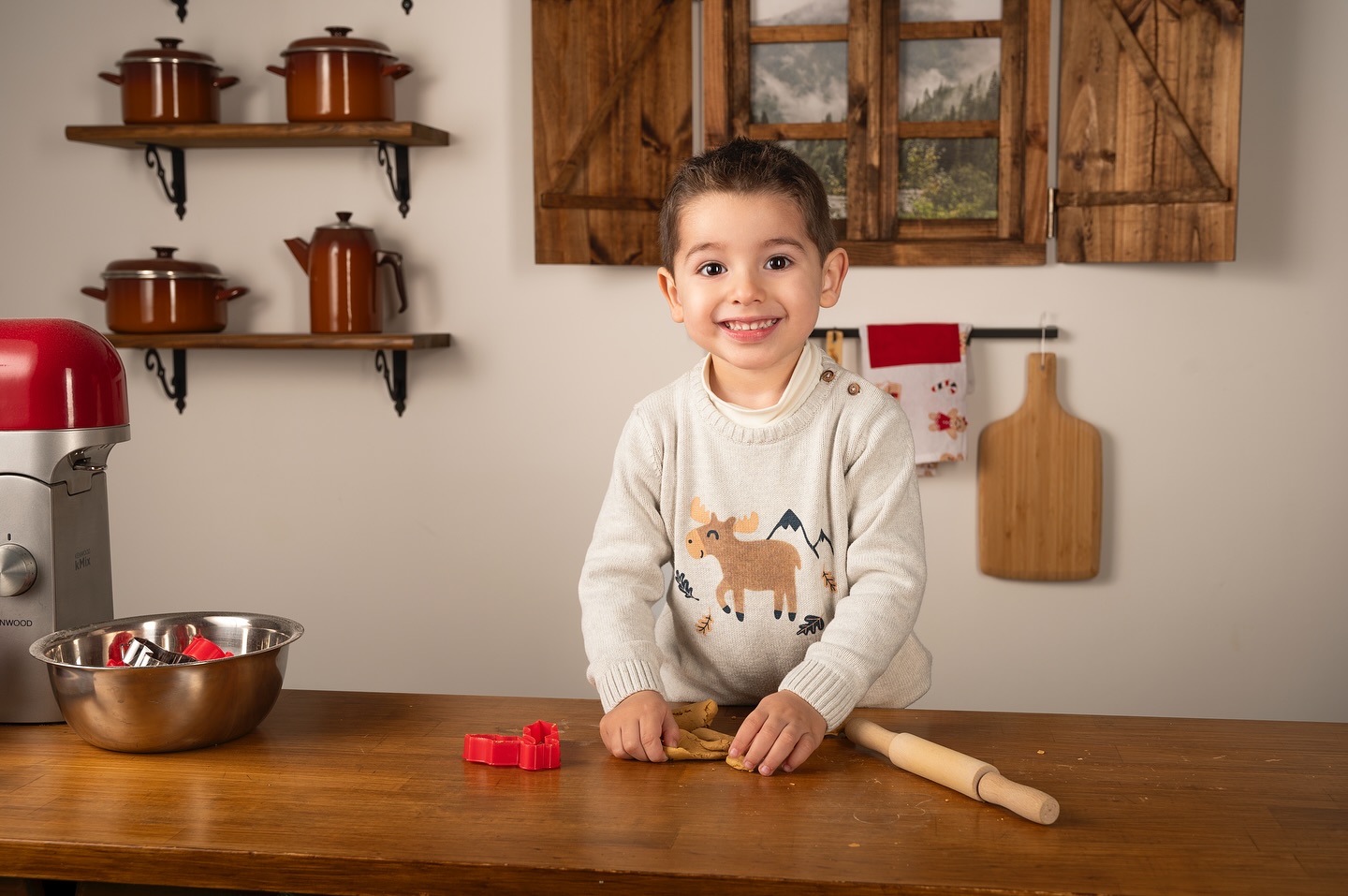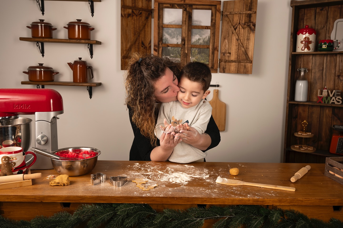 En el estudio, esas sensaciones se multiplican. Durante estas semanas, el espacio se transforma en un rincón cálido y mágico, lleno de luz, detalles y emoción. Cada año preparo con mucho cariño un decorado diferente: sencillo, acogedor y pensado para que las familias se sientan cómodas y los niños puedan disfrutar mientras todo fluye de manera natural.
